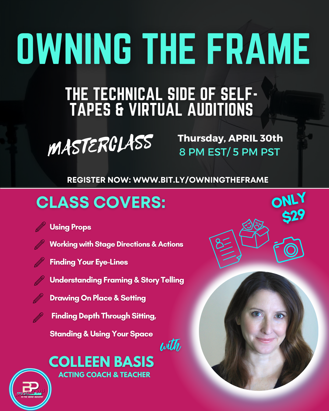 This is a 2-hour Masterclass with q&a led by Acting Coach and Teacher, Colleen Basis.